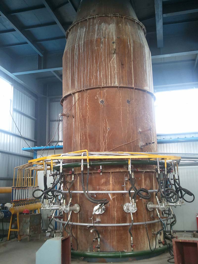 由具有垂直軸線的鋼外殼和耐火磚內(nèi)襯組成的一種立式連續(xù)式窯爐,也按三帶劃分,使用溫度1350℃-1950℃,用于燒制高 端耐火材料原料。通常使用液體或固體燃料,熱效率高于隧道窯,節(jié)能效果明顯,目前在國內(nèi)高 端耐火材料行業(yè)使用廣泛。